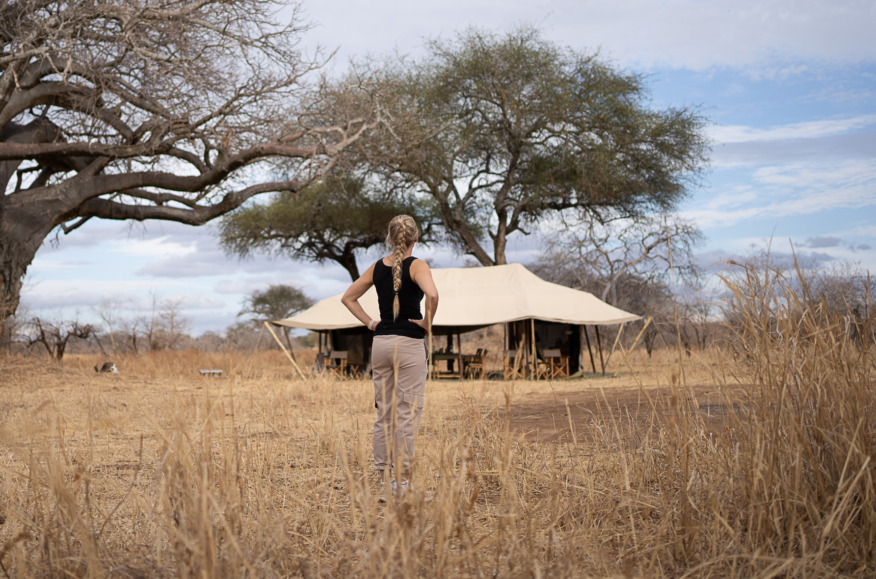 På safari er det viktig å gi beskjed til en vakt hvis dere ønsker å forlate teltet eller lodgen. Det kan være ville dyr i nærheten.