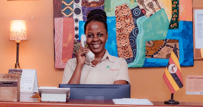 De offisielle språkene i Uganda er engelsk, luganda og swahili. På hoteller og turistattraksjoner er det engelsk som blir brukt.