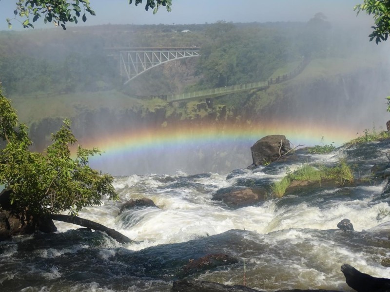 En interessant avstikker var turen til Zimbabwe, der en energisk jente sjekket febertemperaturen vår, så vi ikke hadde fått Ebola! Vi gikk tilbake over Victoria Falls Bridge. Den er 198 meter lang, og det høyeste fallet er 152 meter - altså bra for bungee hoppende! På dag tolv vandret vi ned de mange uregelmessige trappetrinnene på Boiling Pot Trail. Rundt oss blomstret regnskogen med dadelpalmer, fikentrær, ibenholt og melkevedtrær. Vi satt en stund nederst ved vannet og så med hvilken enorm kraft vannvirvlene kolliderte med hverandre.