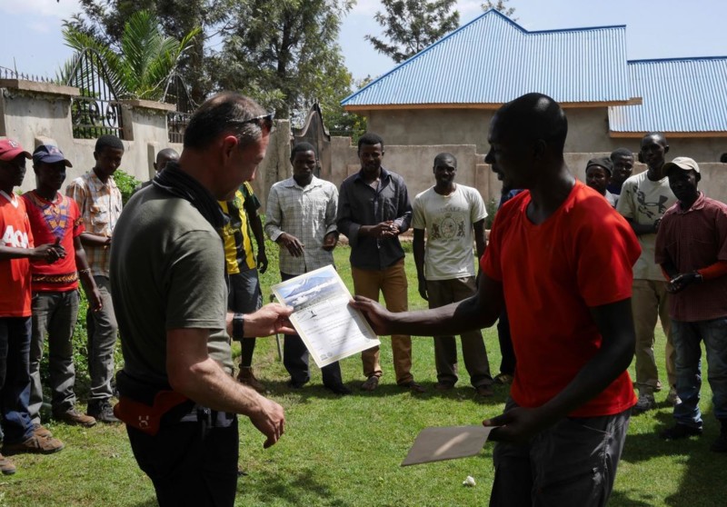 Vandringen ender på Mweka Camp. Hvilken følelse å ta en Kilimanjaro-øl for første gang på en uke! Deretter tar vi bussen til kontoret. Trette, men glade. Alle er i god form. Det blir servert en god lunsj, og det er hyggelig å møte Marcus, kona hans og sønnen. Deretter holdes en lang og flott seremoni som virkelig engasjerer oss alle. Vi får våre sertifikater, og alle blir ønsket velkommen med sanger og danser på en fantastisk afrikansk måte. Wow! Jeg avslutter seremonien med en tale på engelsk og noen setninger på swahili. Asante Sana til alle!