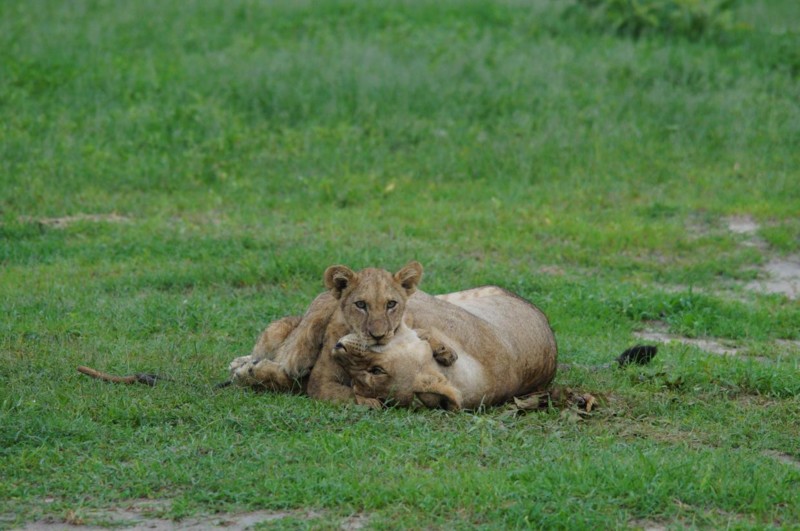 En ny morgen med nye muligheter. Denne morgenen kunne vi følge planen vår og komme ut på morgensafari. Vår guide så løvespor i sanden og ved å følge sporet kom vi rett mot en hannløve på veien, bak ham var det en løvinne og en eldre hannløve med nesten svart manke. Det ble et flott møte med løvekongen. Det er vanskelig å beskrive følelsen som oppstår når man er bare noen meter fra disse majestetiske og kraftfulle dyrene. Vår gamedrive fortsatte, og vi nøt solrikt vær og vakker natur. Savutis uberørte økosystem er utrolig vakkert og byr på variert landskap; savanne, ørken, åser og våtmarker, noe som gjør opplevelsen svært unik. Vi fikk noen timer med hvile og lek på leiren, barna kjørte rundt på motorsyklene sine og gravde. Deretter dro vi ut på ettermiddagssafari. Vår guide fortalte at løvene i Savuti er kjent for å jakte store byttedyr som elefanter, bøfler og giraffer. Dette var også noe vi fikk se med egne øyne. Ved et vannhull møtte vi en stor løvefamilie og en død elefant. Da vi kom dit, var det hannløven som spiste på elefanten, men etter hvert, da han var mett, overtok løvinnene og ungene. Ola var helt fascinert av å se løveungene og ville ikke dra derfra. Vi forlot dem en kort stund da guiden fikk øye på ville hunder, men lovet Ola at vi skulle komme tilbake til løvene. Vi klarte å se elleve ville hunder, men de hadde det travelt videre. Da vi alle var fornøyde med å ha sett på løvene, dro vi tilbake til vår leir.