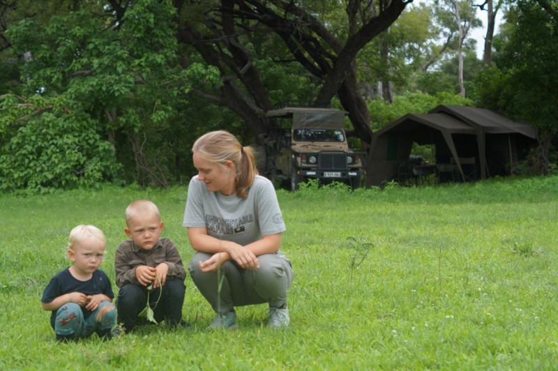 Etter frokost pakket vi sammen vår jeep og startet vår reise mot vår mobile leir som lå i den nordlige delen av Chobe National Park. Dette området kalles ofte Chobe Riverfront, akkurat som navnet antyder, renner Chobe-elven her. Elven er viktig og gir vann til hele området. Spesielt i tørrperioden trekker store flokker av elefanter og bøfler seg til elvebredden. På grunn av det rike dyrelivet og den enkle tilgjengeligheten, er det også den mest besøkte delen av Chobe National Park. Safari i den nordlige delen av Chobe National Park kan enkelt kombineres med noen dager ved Victoriafallene. Ved ankomst til leiren innsjekket vi før lunsj. Det var en av de varmeste dagene under safarien vår, og vi søkte alle skyggen. Barna gravde store hull i sanden og hang med kokken og hans assistent, og så hvordan de forberedte mat over åpen ild. Vi dro ut på en sen ettermiddagssafari. Chobe er kjent for å ha de største elefantflokkene i Afrika. Det fikk vi også oppleve; det føltes som om vi så en elefant bak hver busk. Vi avsluttet dagen med middag foran bålet.