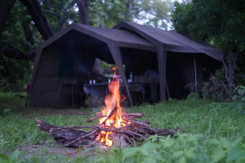 Vi sovnet til lyden av kraftig regn mot teltduken. I løpet av natten ble vi vekket av en gruppe elefanter som gikk gjennom leiren. Spenningen var til å ta og føle på, vi kunne tydelig høre lyden av knuste kvister og hvordan elefantene dro i et av trærne rett ved siden av teltet vårt. Vi klarte å sovne igjen da lyden utenfor avtok. Imidlertid fortsatte regnet å øse ned hele natten. Vi måtte utsette den planlagte morgensafarituren og ha en rolig morgen på leiren, for det regnet virkelig kraftig, og vi ville blitt gjennomvåte. De fleste dyrene pleier også å holde seg unna og søke ly når det regner. Det var koselig å sitte inne i teltet og lese bøker og tegne mens det regnet utenfor. Det føltes som om regnet aldri skulle slutte, men mot ettermiddagen, etter lunsj, begynte regnet å avta, og vi kunne dra ut på safari. Bakken var våt etter det kraftige regnet, noe som gjorde selve kjøringen spennende, da sand og leire kan gjøre veien veldig glatt, og bilen kan lett synke ned. Men med en kraftig bil og en erfaren guide gikk det bra. Vi hadde virkelig flotte opplevelser i Moremi Game Reserve. Okavangodeltaet er kjent over hele verden for sitt frodige landskap, våtmarksområder og rike dyre- og fugleliv. Guiden vår fortalte oss at deler av året ville vi ikke kunne kjøre der vi kjørte, fordi veiene da ville vært oversvømmet med vann. Vi så et variert utvalg av dyr og kom tilbake til leiren for buskmiddag før vi la oss i teltet.