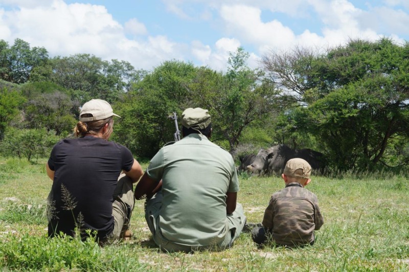 Markus og Ola gjorde seg klare for neshornsporingstur. Det var en spennende opplevelse, de møtte opp med sin guide og begynte å vandre inn i bushen. Etter litt over 1 km fikk de se to neshorn stå i skyggen under et tre. På guidens instruksjoner begynte de å nærme seg, guiden tok opp sand for å sjekke hvilken vei vinden blåste. Neshornet har veldig dårlig syn, og guiden forklarte at det var viktig at de oppdaget vår tilstedeværelse uten å bli overrasket. Det hvite neshornet er vanligvis ikke aggressivt med mindre det føler seg truet. På ettermiddagen dro vi på en fjelltur sammen med guiden vår. Det var en veldig vakker sti med utsikt over åsene og steinformasjonene. På noen steder var det litt bratt og glatt, men vi kom oss opp til toppen og tilbake uten større problemer og i godt humør. Den typen aktiviteter er flotte å gjøre som en familie. Barna fant steiner som de kastet og pinner som de begynte å tegne med i sanden. Det handler om å finne en balanse mellom å komme til målet raskt og å la barna bruke fantasien sin langs veien. Det ble en flott start på det nye året.