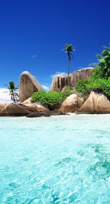 Et par timer østover venter en helt annen verden: Seychellenes grønne granittøyer, omgitt av krystallklart hav og strender så hvite at de glitrer i solen. Her finner du roen blant palmesus, korallrev og varme bølger som skyller innover stranden.