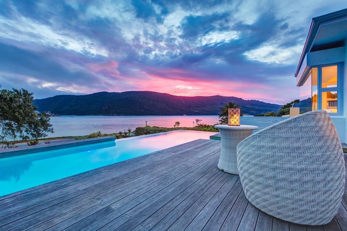 Hotellet har en vakker hage og et fint bassengområde. I området kan du padle kajakk, sykle eller utforske Knysna Heads og de nærliggende skogene. Det omkringliggende landskapet byr på en blanding av frodig grønt, spektakulære klipper, vakre strender og rolige laguner, perfekt for naturelskere og eventyrere.
