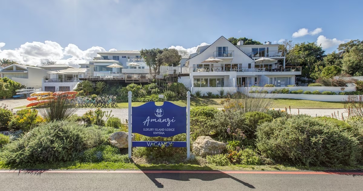 Amanzi Island Boutique Hotel er et elegant og avslappet overnattingssted ved Knysna Lagoon, med romslige, luftige rom – mange med balkong og utsikt over vannet. Perfekt for par eller familier som søker et hyggelig hotell med mulighet både for avslapning og bading, men også for en aktiv ferie i et av Sør-Afrikas mest naturskjønne områder.