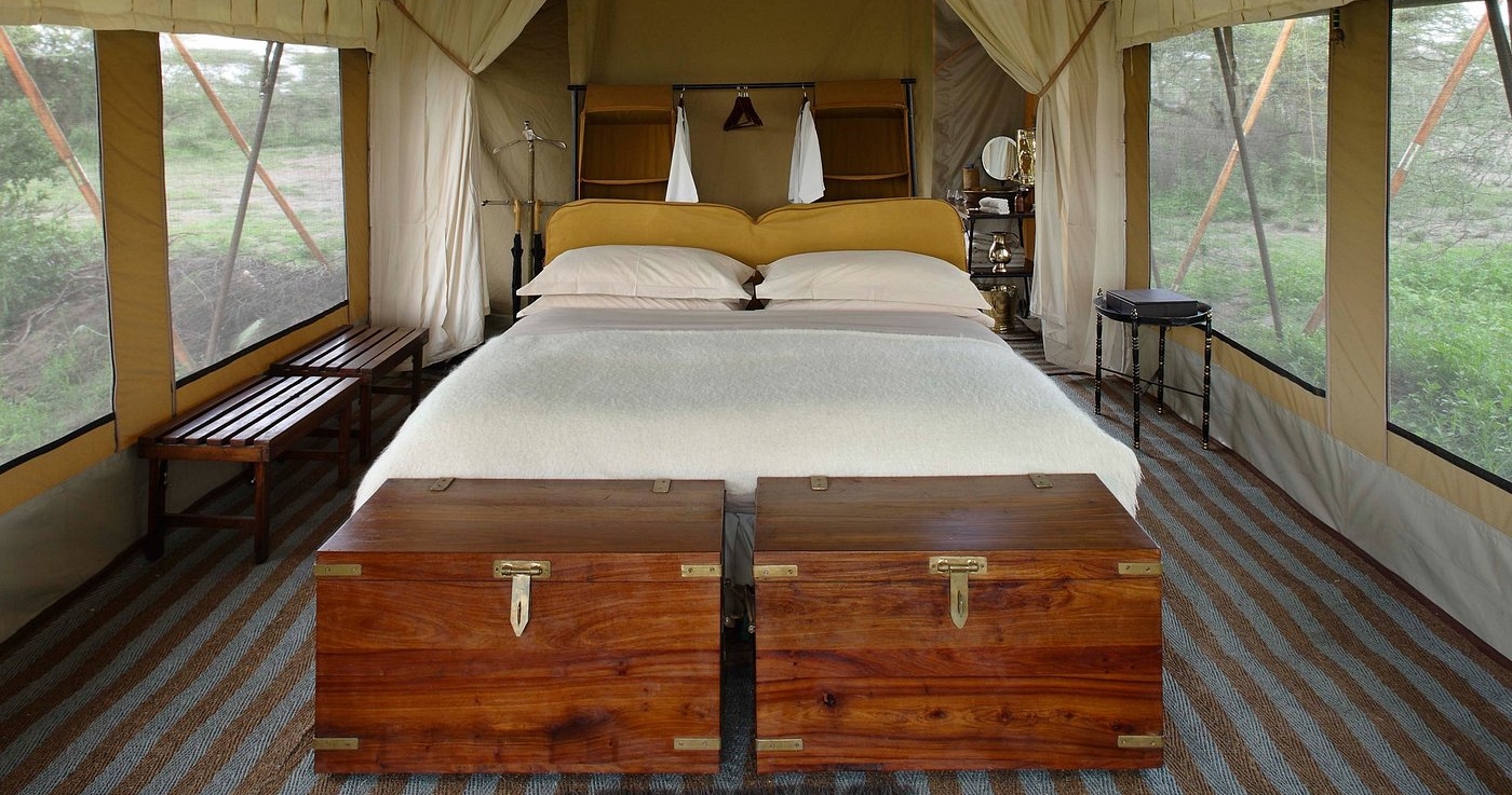 De store, romslige og elegante teltene er bygget på treplattformer. I tillegg til komfortable senger og bad, er det også utendørs dusj. Alle teltene har en stor og romslig veranda, hvor du kan se utover Serengetis uendelige sletter.