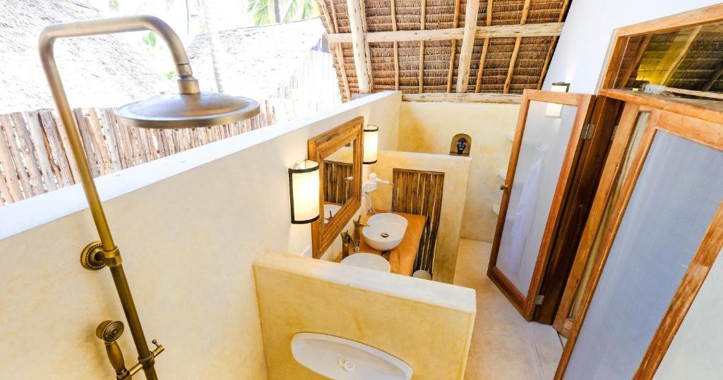 Bungalowen er en del av Mwezi Boutique Hotel, og dere deler restaurant og fellesområder med hotellene Mwezi og La Luna. I strandbaren kan du nyte noe avkjølende å drikke, spille spill eller lytte til musikk mens du slapper av i en sofa eller hengekøye.