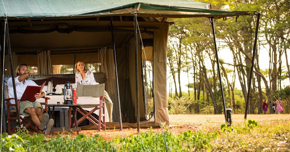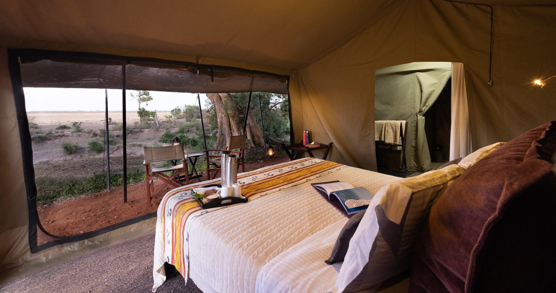 Den autentiske innredningen gjenspeiler safarieventyrene fra 1920-tallet og suppleres med moderne komfort, inkludert et evighetsbasseng med utsikt over elven. Med bare 16 telt, inkludert ett større familietelt, tilbyr campen en eksklusiv og privat opplevelse og ønsker gjester i alle aldre velkommen.
