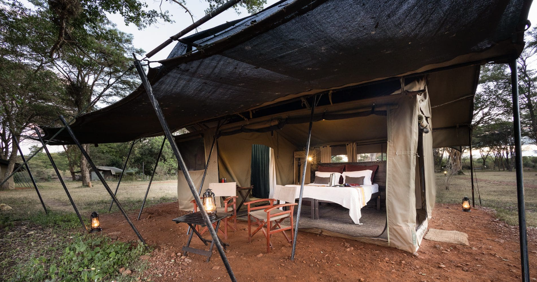 Det er kun 10 romslige og komfortabelt innredede telt som bidrar til den intime og luksuriøse følelsen. Hvert telt er smakfullt dekorert med afrikansk tema. I campens restauranttelt serveres både internasjonale retter og lokale delikatesser, tilberedt av deres kokk.
