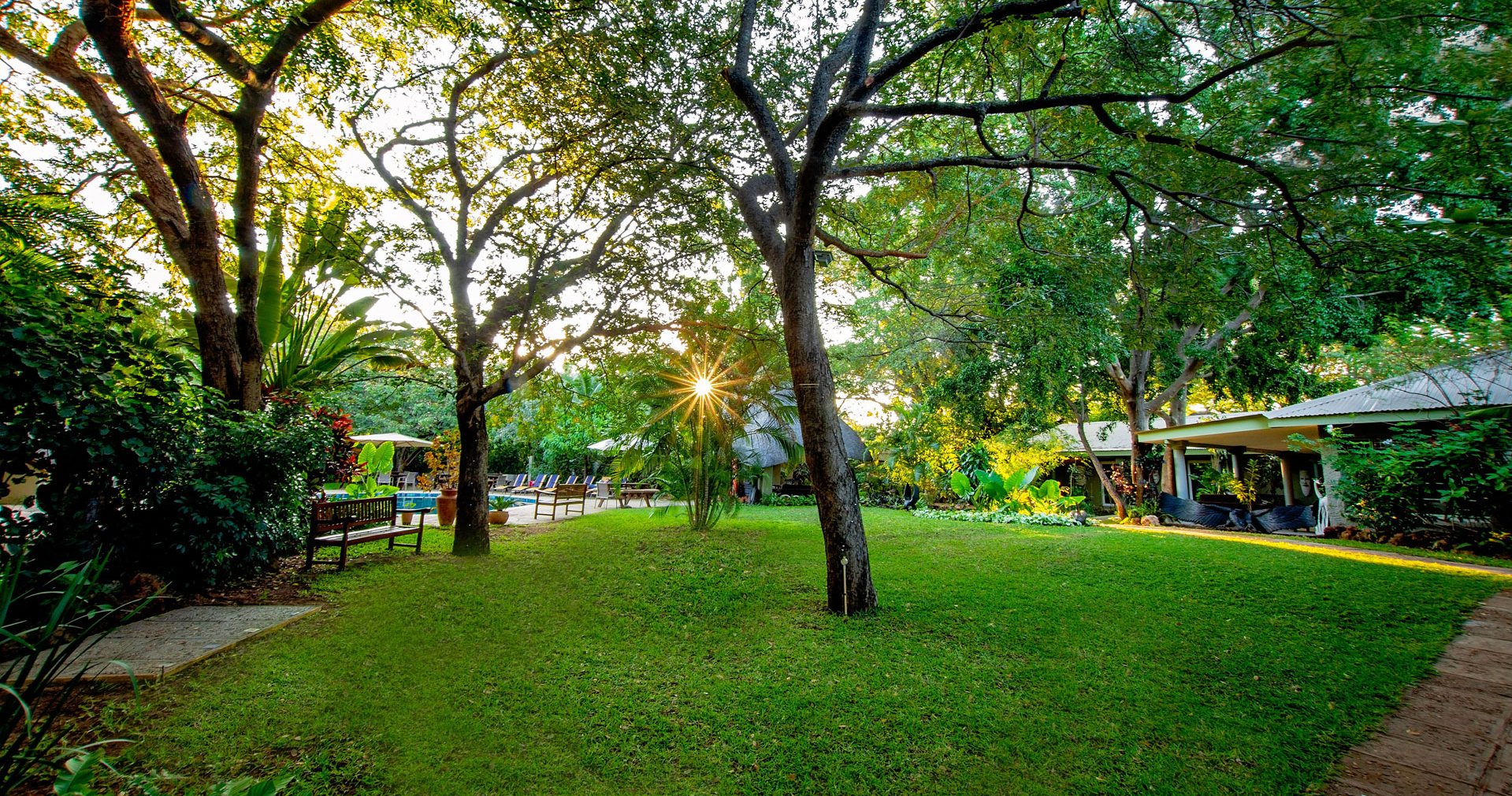 Her råder det ro og harmoni. Med to bassenger, et spa og en frodig hage er det gode muligheter for avslapning mellom dine safarieventyr.