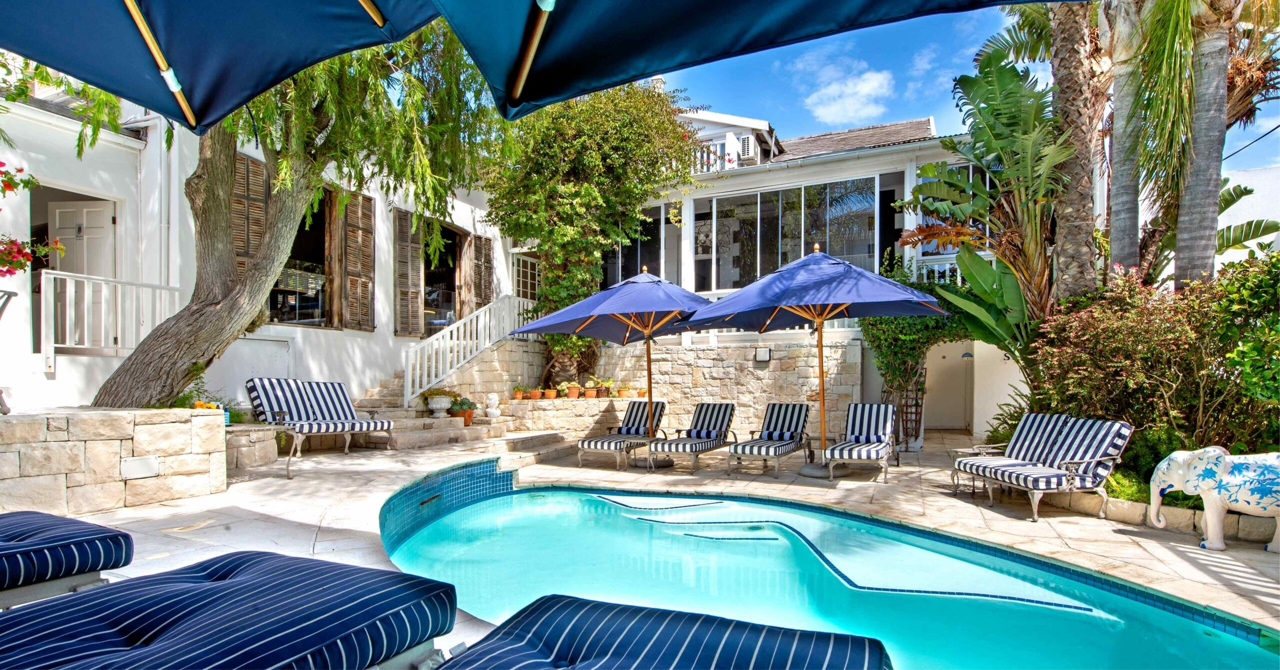 Hout Bay Manor er et sjarmerende boutiquehotell i kystbyen Hout Bay, like utenfor Cape Town. På den hyggelige gårdsplassen finner du både basseng og uteservering. Huset ble bygget i 1871 og bærer preg av både historie og stil.