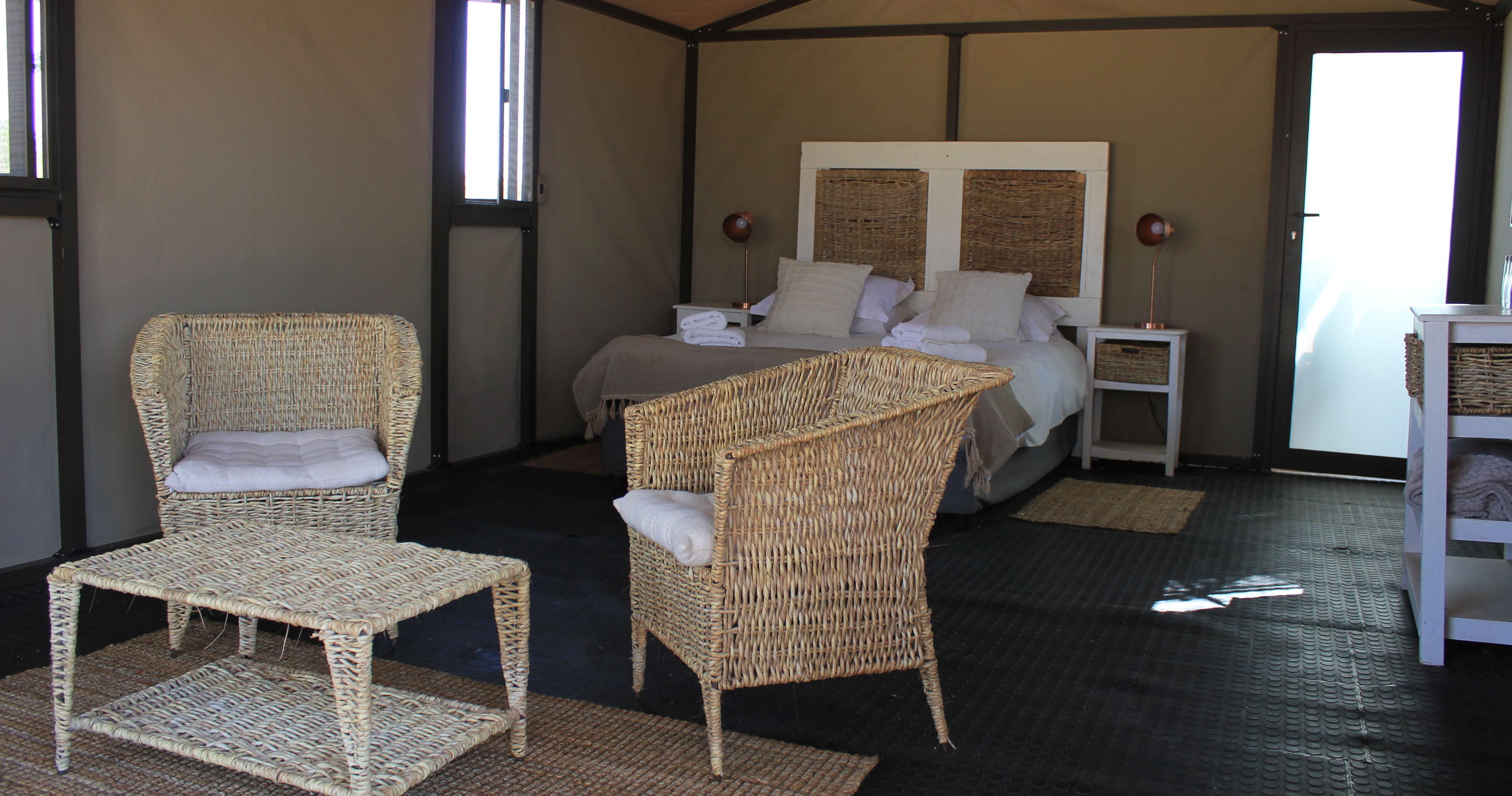 Campen har sju private campsites strategisk plassert mellom store kampesteiner, hver med eget dusjrom og toalett, kjøkkenkrok og grillområde.