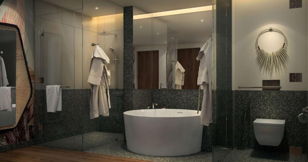I tillegg til moderne fasiliteter, inkludert en spa-anlegg og utsøkte spisesteder, er det også et basseng med havutsikt. Hvis ønskelig, er det mulighet for å booke rom med privat basseng.
