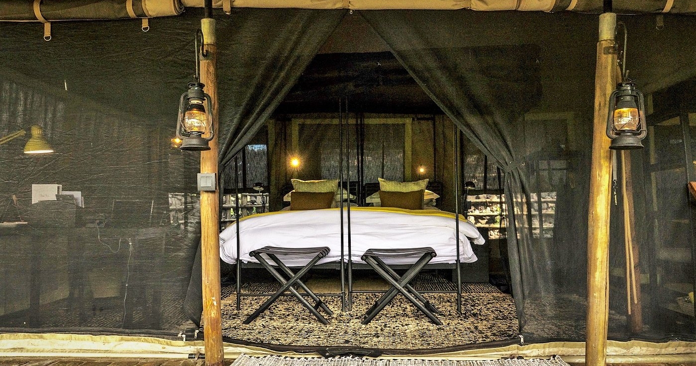 Campen er åpen fra juni til midten av mars hvert år og består av seks romslige safaritelt samt et familietelt, alle med egne bad og både innendørs og utendørs dusjer. Teltene er designet for å smelte sammen med omgivelsene og det ville, med private verandaer som tilbyr spektakulære utsikter over parken.