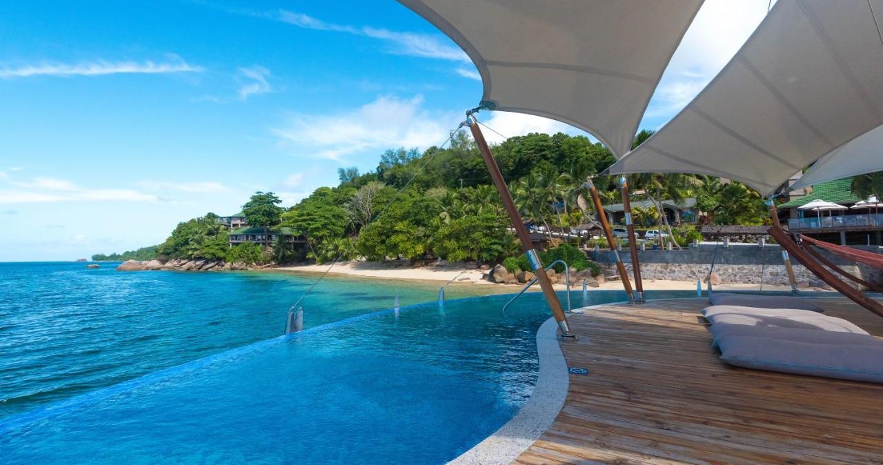 Oppkalt etter det sjeldne og unike Coco de Mer-palmen, tilbyr hotellet spektakulær utsikt over de omkringliggende øyene, skogkledde fjellsider og strålende solnedganger.