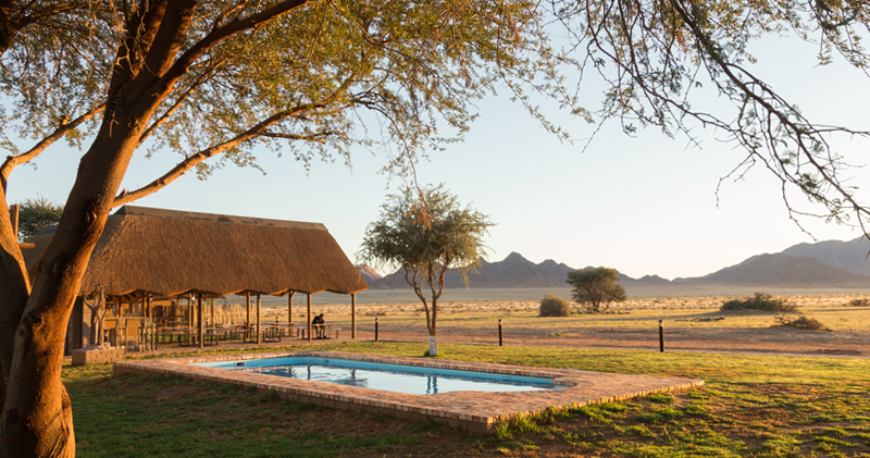 Det er en kort kjøretur fra inngangen til Namib-Naukluft nasjonalpark, og dermed et ideelt utgangspunkt for å besøke de berømte sanddynene i Sossusvlei og de dramatiske, døde trærne i Deadvlei.