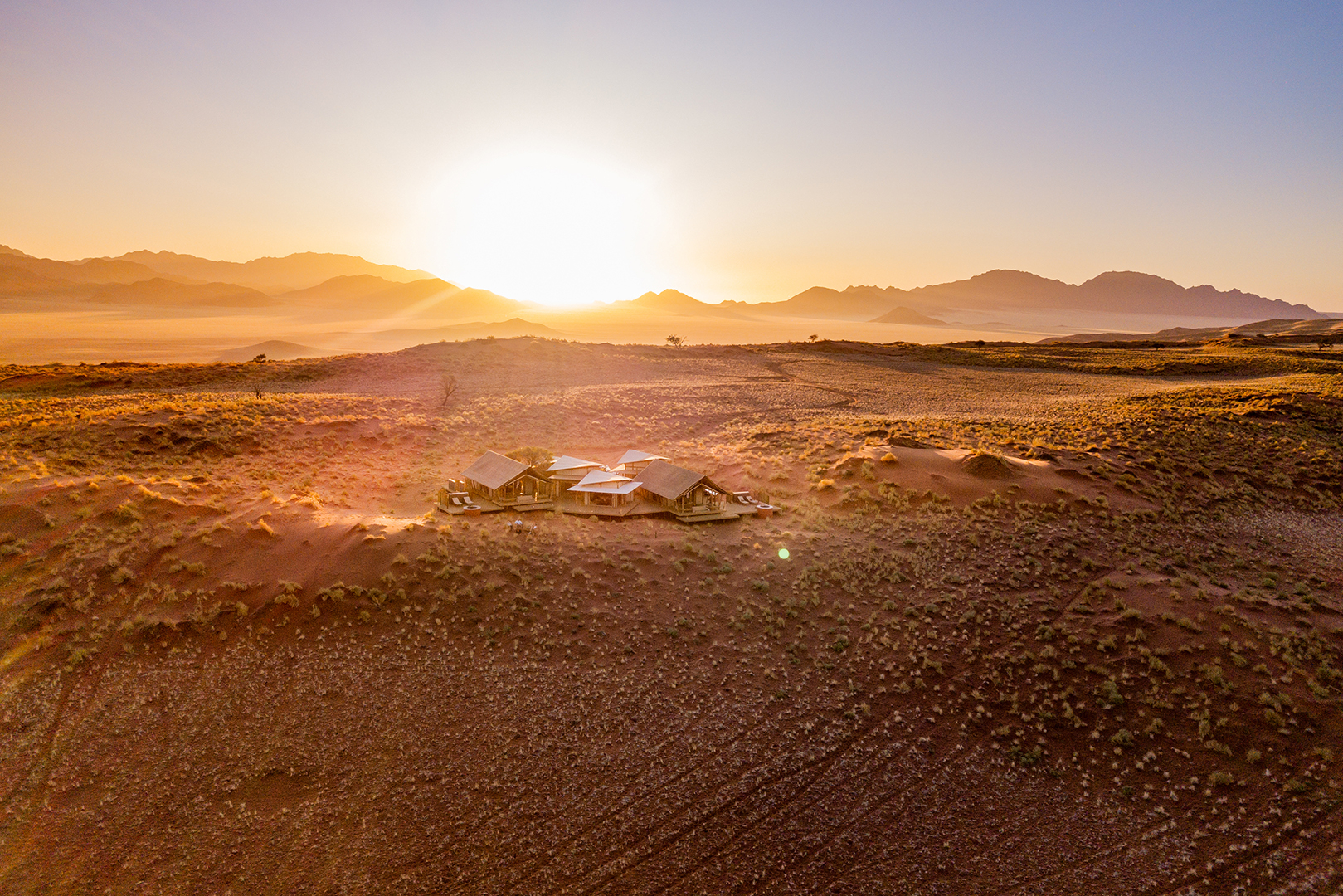 Desert Lodge by Wolwedans, beliggende i hjertet av NamibRand Nature Reserve i Namibia, tilbyr en unik opplevelse der storslått natur og komfort møtes. Lodgen er spesielt designet for å blende inn med ørkenen.