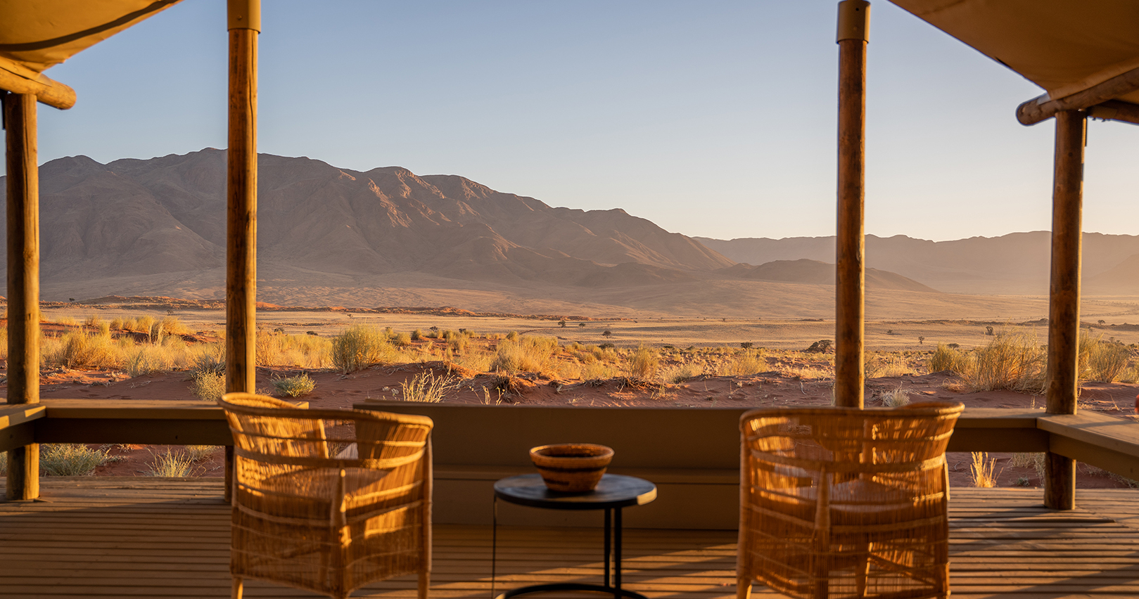 De ti teltede rommene er bygget for å maksimere utsikten over det uberørte sandlandskapet, og hvert rom har en privat veranda. Her kan du sove med åpne lerretsgardiner for å nyte den kjølige kveldsbrisen og den stjerneklare himmelen.