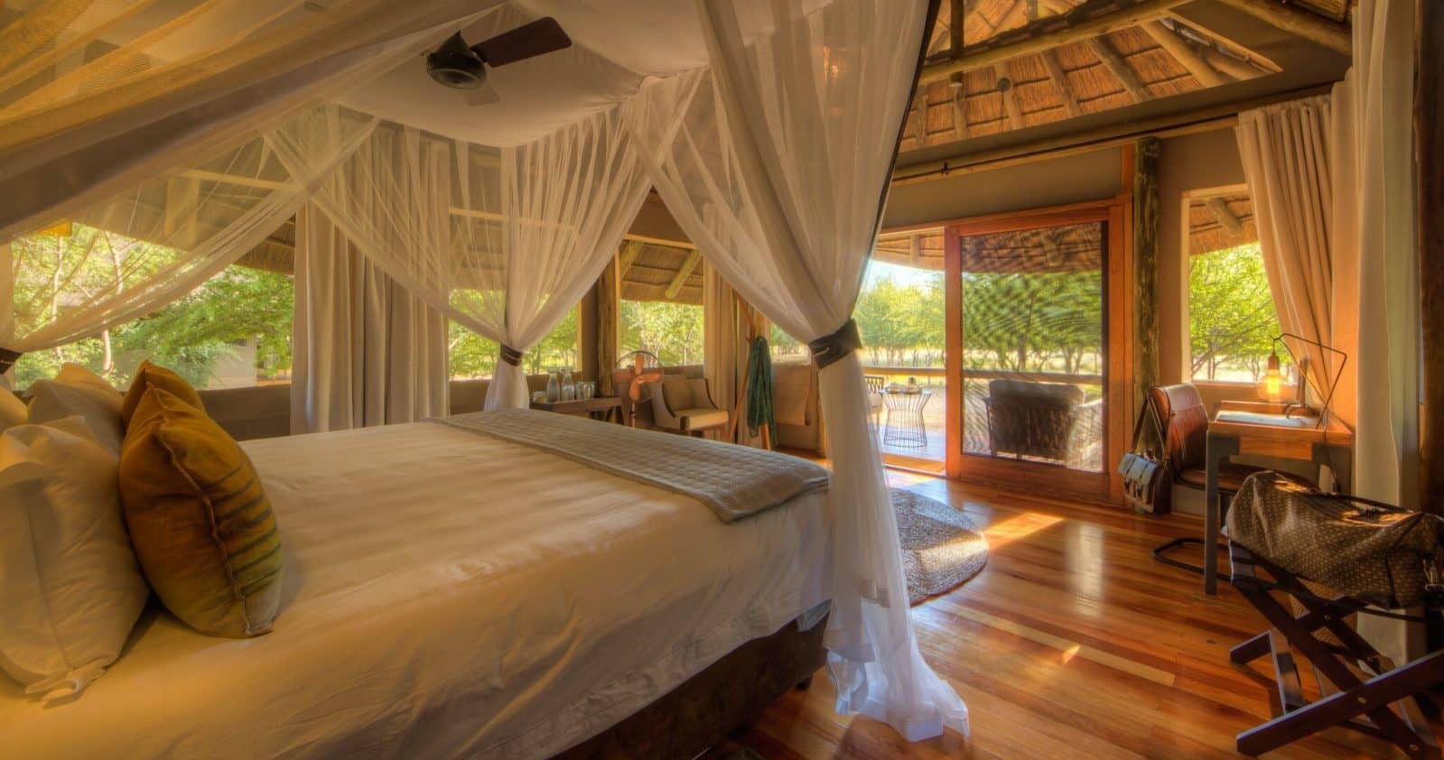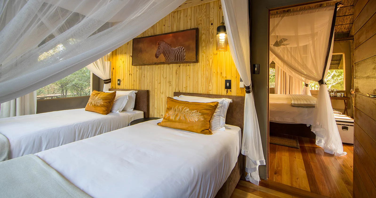 Tau Pan er et overnattingssted som legger vekt på bærekraft og autentiske opplevelser. Suitene er utstyrt med både innendørs og utendørs dusjer, doble vasker, og king-size senger. Nyt villmarken, det rike dyrelivet og storslåtte safariopplevelser.