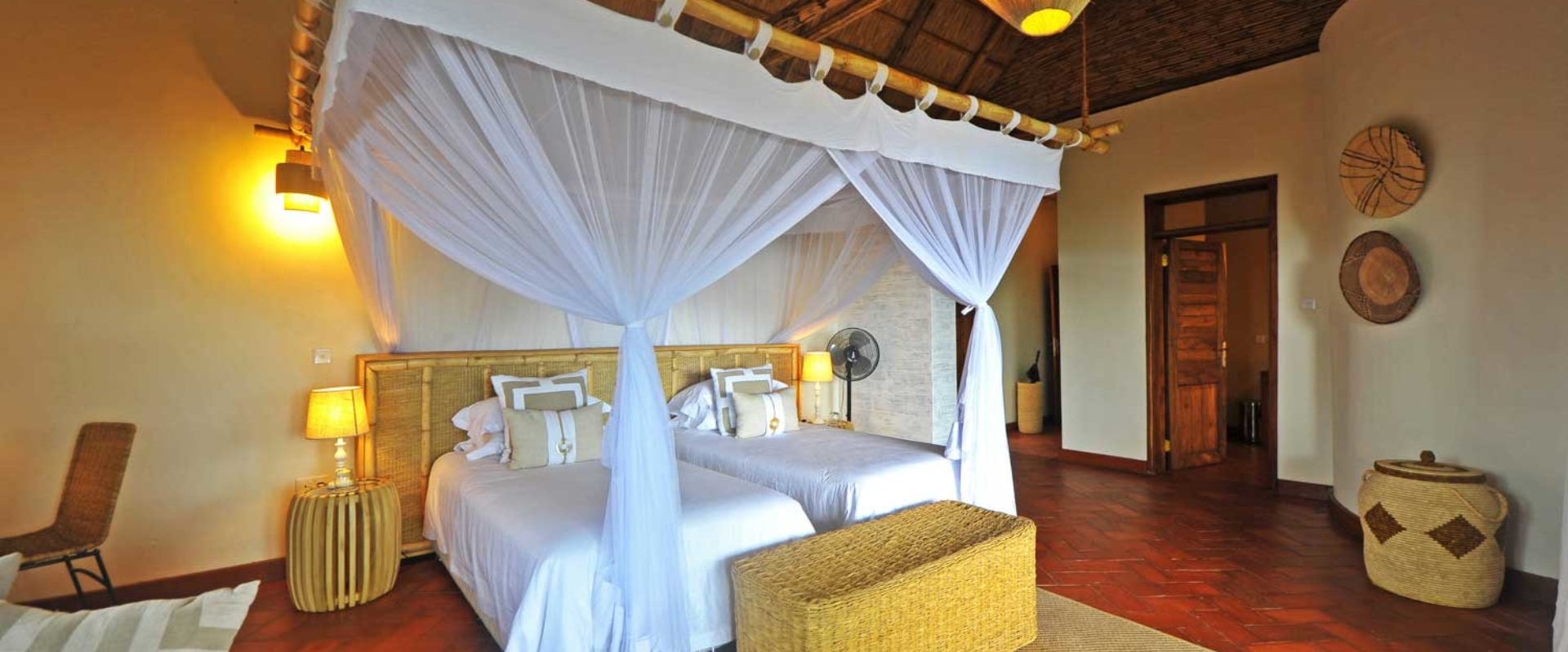 Turen opp til rommene er en opplevelse i seg selv, med godt vedlikeholdte gangstier og ville trær. Det rike landskapet og den frodige naturen sammen med fuglekvitter er en opplevelse for livet. Alle hyttene er plassert og vakkert utformet i landskapet og har utsikt over Lake Kikorongo, Lake George, og det enorme landskapet i Queen Elizabeth National Park. Hver hytte gir mulighet for privatliv og for hver gjest å slappe av i sitt eget stykke paradis.