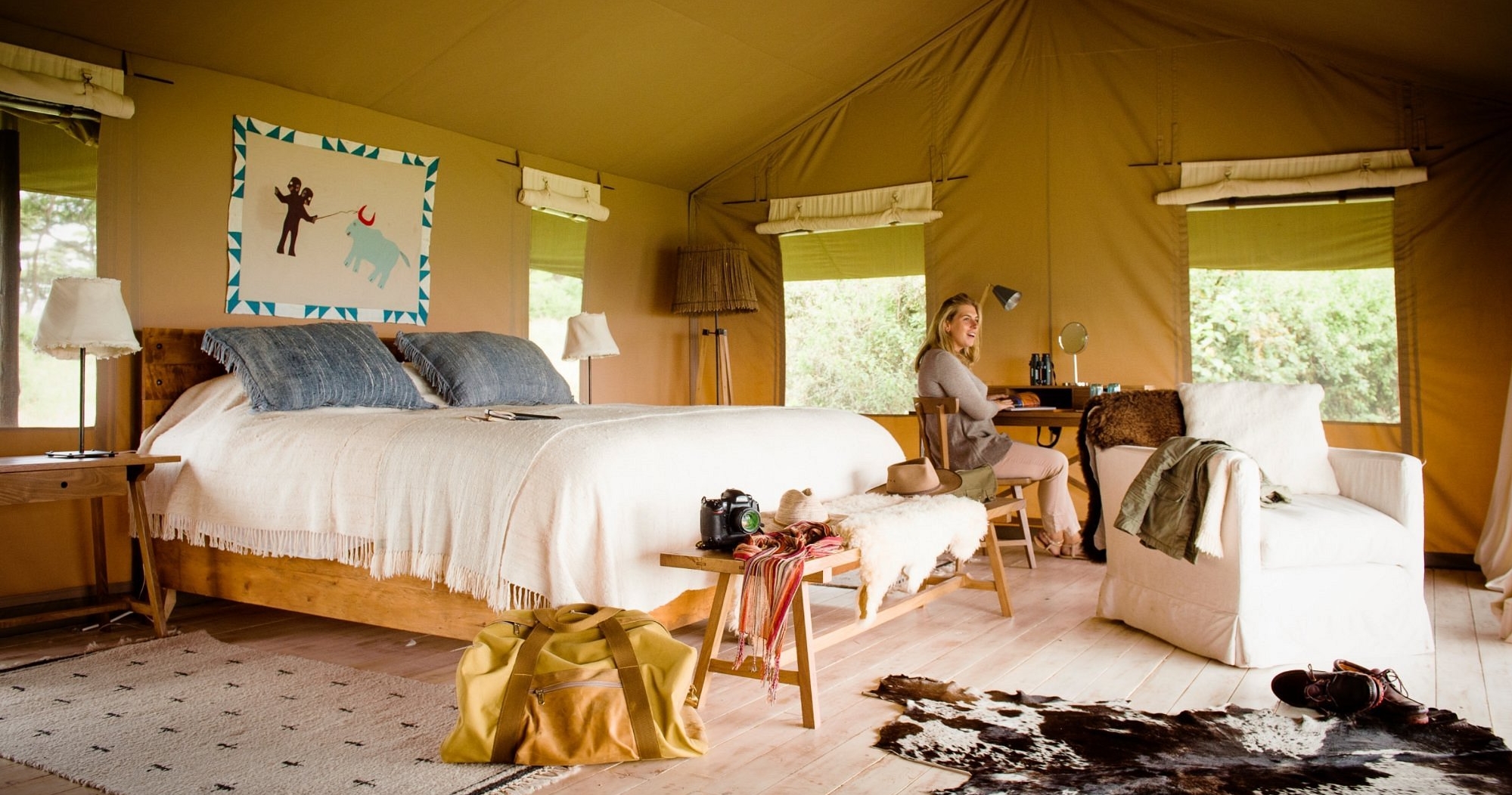 Overnattingen består av kun seks romslige og velutstyrte telt som naturlig smelter inn i det omkringliggende miljøet. Hvert telt er utstyrt med eget bad og tilbyr maksimal komfort samtidig som overnattingen opprettholder en følelse av ekte villmarksliv.