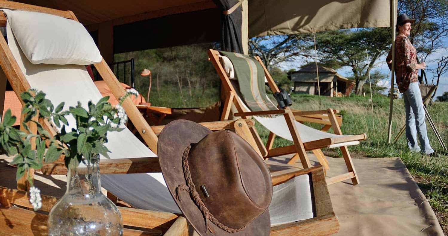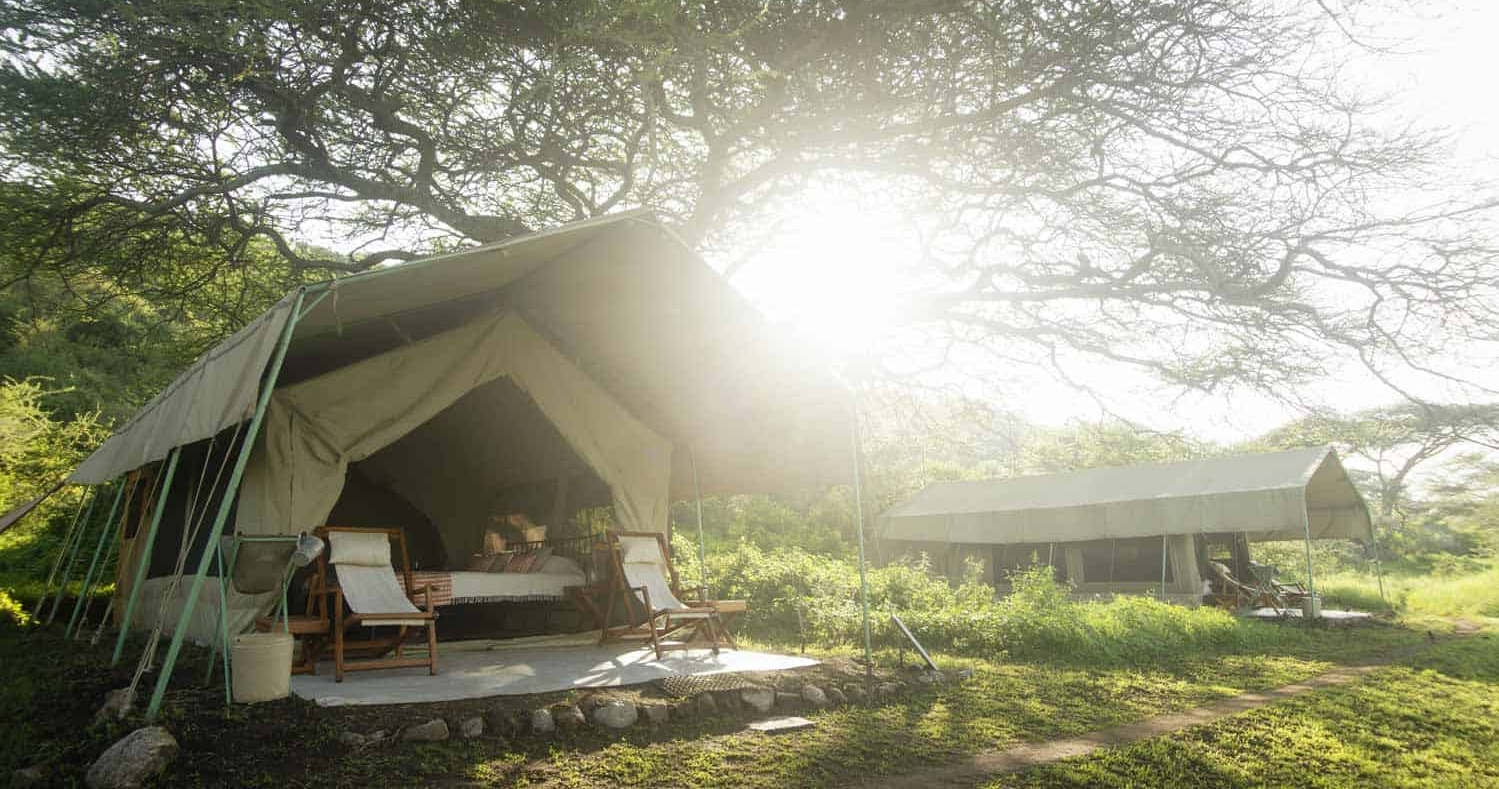 De store, romslige og elegante teltene er bygget på treplattformer. I tillegg til komfortable senger og bad, er det også utendørs dusj. Alle teltene har en stor og romslig veranda, hvor du kan se utover Serengetis uendelige sletter.