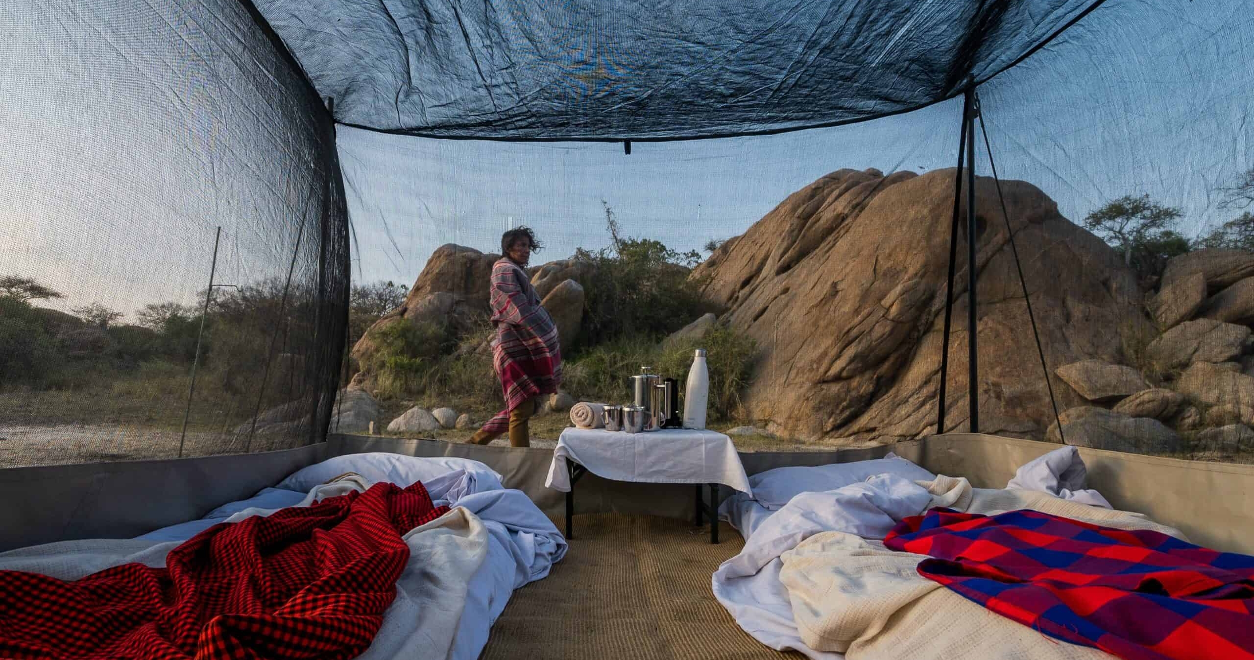 Med bare åtte telt er en intim og eksklusiv opplevelse garantert. Hvert telt er et mobilt underverk designet for ultimat komfort og luksus, komplett med kingsize-seng, privat bad og utsikt over Serengetis endeløse sletter. I tillegg har hvert telt en privat terrasse med boblebad, perfekt for avslapning etter en dags eventyr.