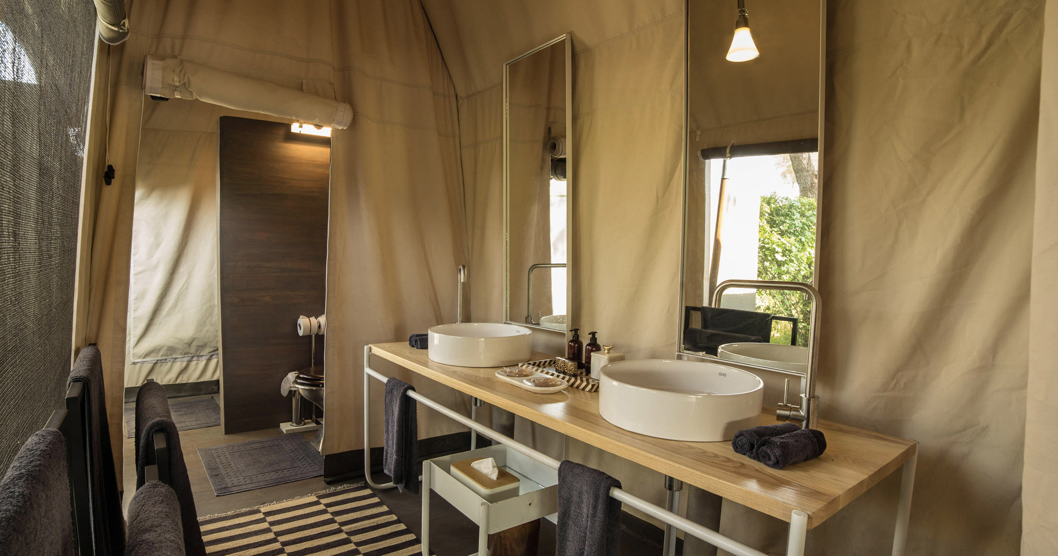 Hvert telt er elegant innredet og har et privat avkjølingsbasseng, innendørs badekar og utendørs dusj. Her ønskes gjester i alle aldre velkommen, og stedet er perfekt for deg som ønsker en luksuriøs og uforglemmelig safariopplevelse i en av Afrikas mest spektakulære omgivelser.