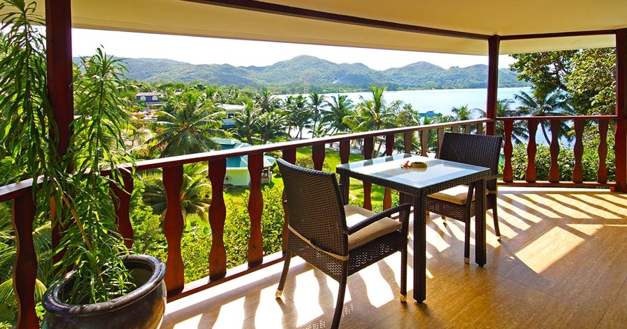 Oppkalt etter det sjeldne og unike Coco de Mer-palmen, tilbyr hotellet spektakulær utsikt over de omkringliggende øyene, skogkledde fjellsider og strålende solnedganger.