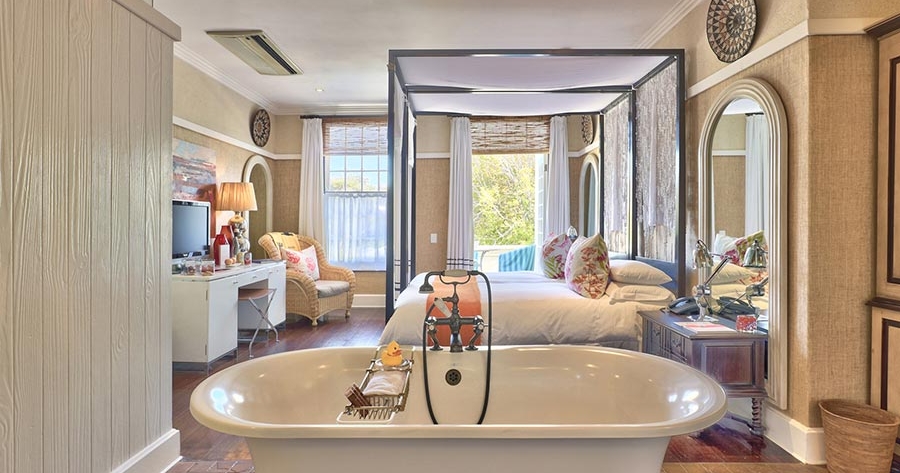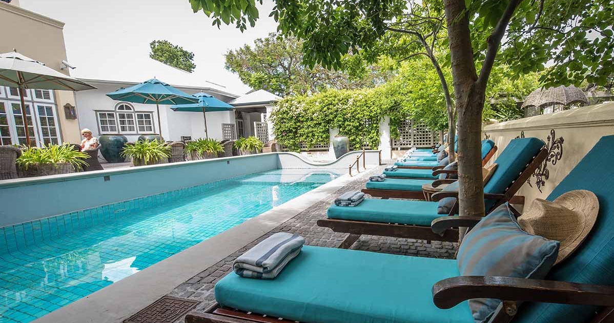 Hout Bay Manor er et sjarmerende boutiquehotell i kystbyen Hout Bay, like utenfor Cape Town. På den hyggelige gårdsplassen finner du både basseng og uteservering. Huset ble bygget i 1871 og bærer preg av både historie og stil.