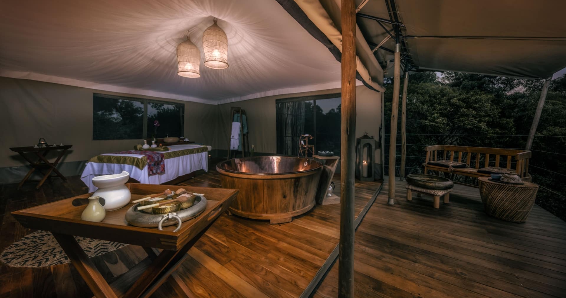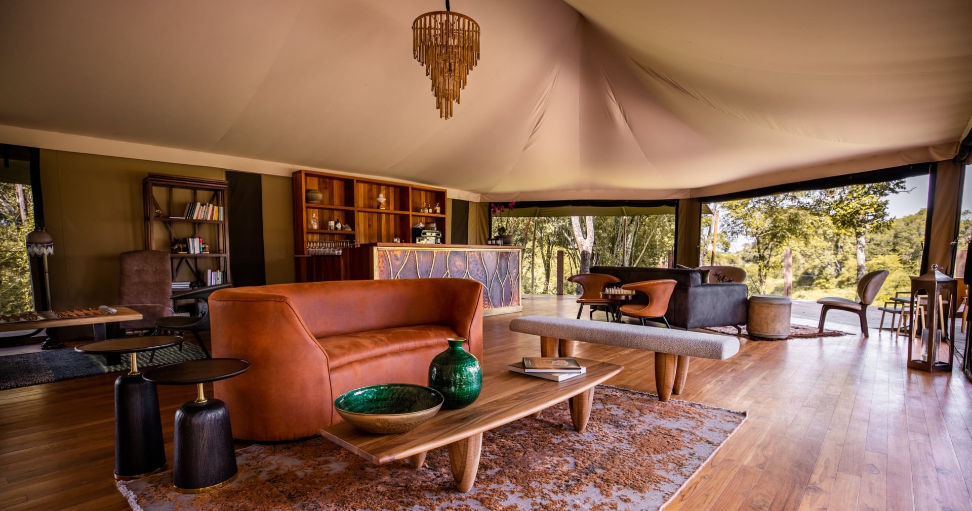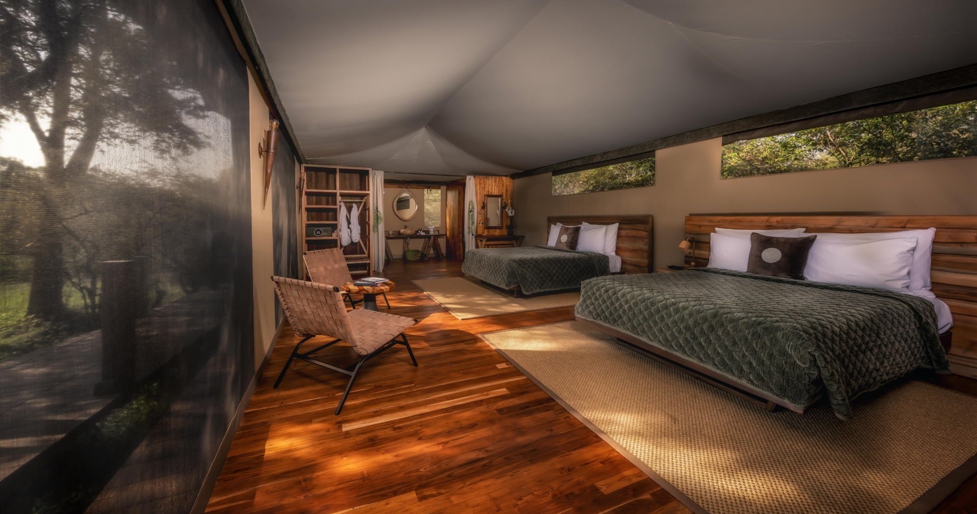 Den autentiske innredningen gjenspeiler safarieventyrene fra 1920-tallet og suppleres med moderne komfort, inkludert et evighetsbasseng med utsikt over elven. Med bare 16 telt, inkludert ett større familietelt, tilbyr campen en eksklusiv og privat opplevelse og ønsker gjester i alle aldre velkommen.