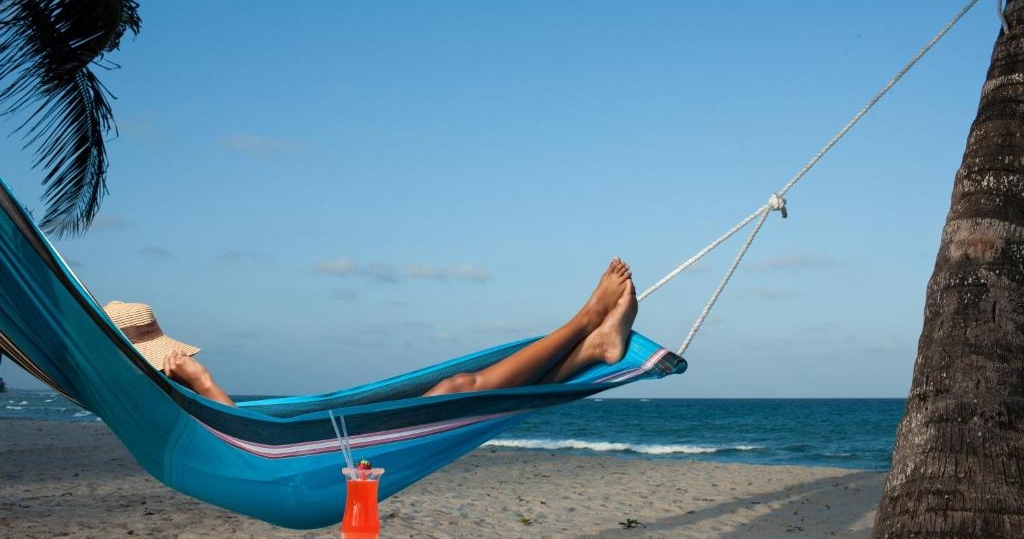 Nyt kystens vakreste utsikt over solnedgangen med en drink i hånda i hengekøyene i strandbaren!