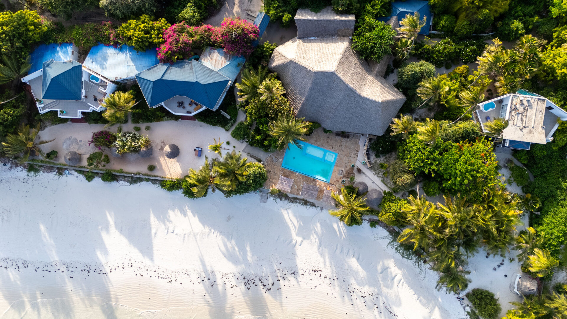 Er dere en stor gruppe kan det kanskje være en ide å leie denne luksusvillaen som ligger rett på stranda. Villaen ligger rolig til i en kokosnøttlund rett på Matemwestranden. Alle møblene er laget av lokalt treverk og villaene er fullt utstyrt med sengetøy og håndklær. Her nyter dere en privat opplevelse med samme service som på et hotell.