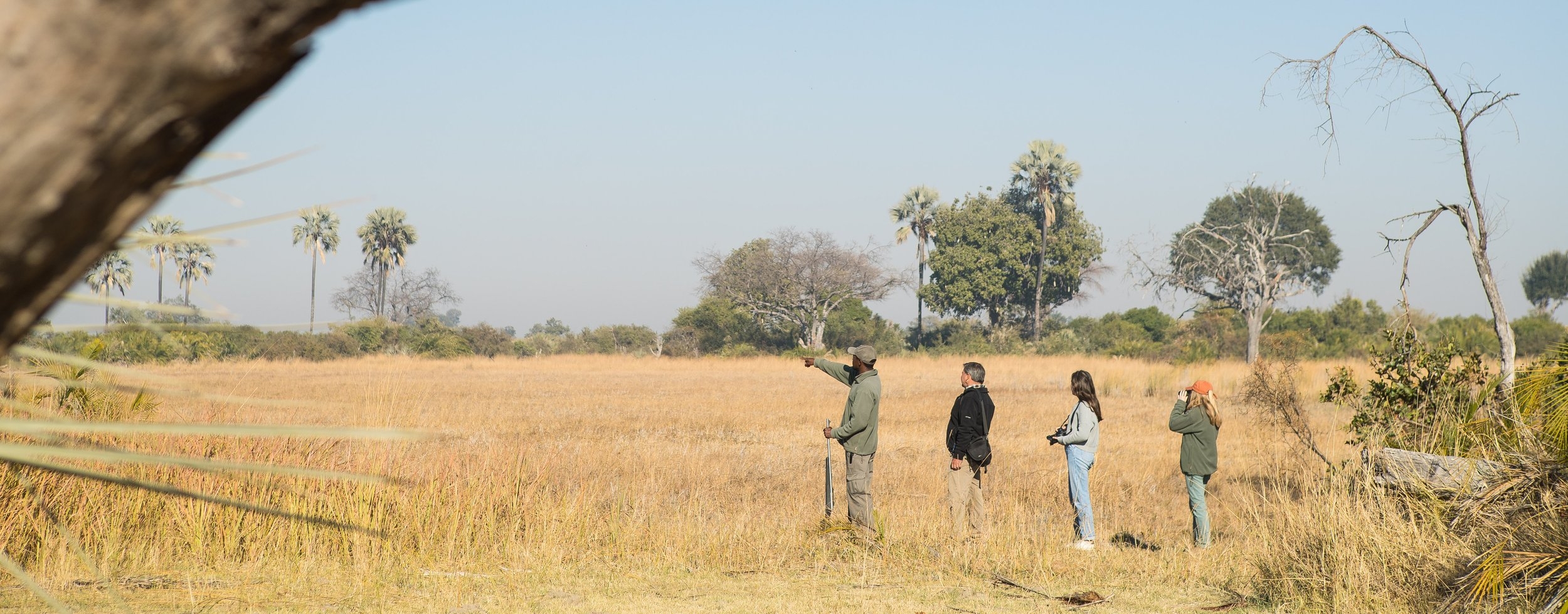 Moremi Crossing, som ligger på en palmekledd øy med utsikt over Chiefs Island i Okavango Delta, tilbyr en safariopplevelse med fokus på vann- og gåturer.