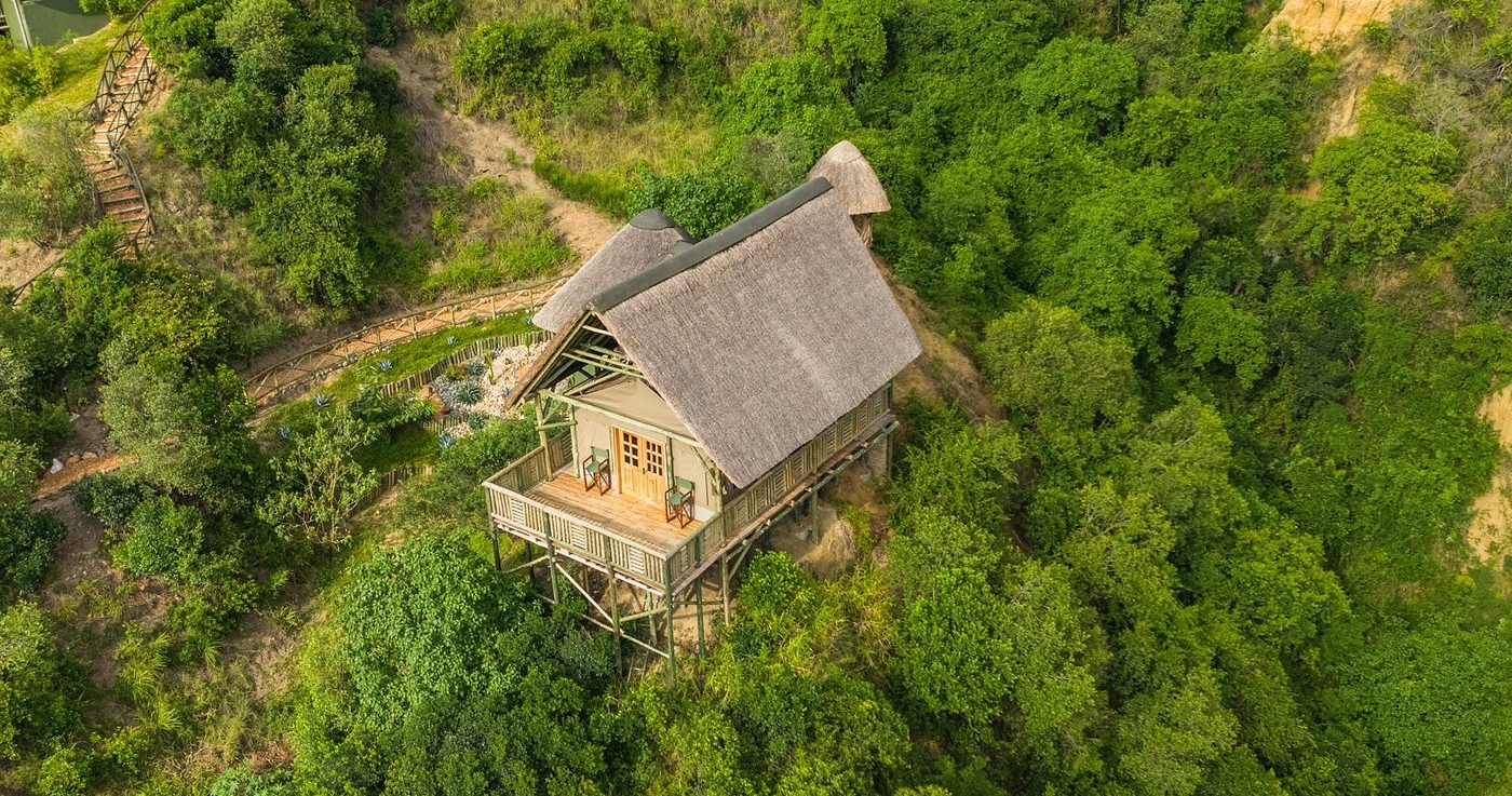 Turen opp til rommene er en opplevelse i seg selv, med godt vedlikeholdte gangstier og ville trær. Det rike landskapet og den frodige naturen sammen med fuglekvitter er en opplevelse for livet. Alle hyttene er plassert og vakkert utformet i landskapet og har utsikt over Lake Kikorongo, Lake George, og det enorme landskapet i Queen Elizabeth National Park. Hver hytte gir mulighet for privatliv og for hver gjest å slappe av i sitt eget stykke paradis.