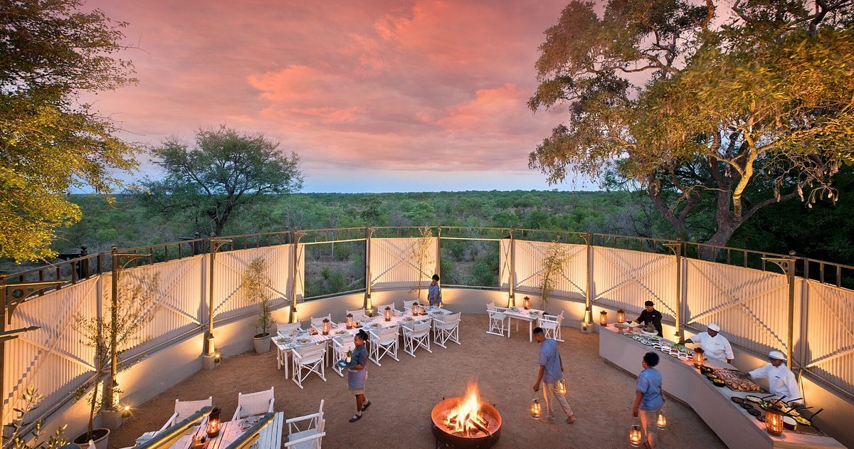 Leopard Hills Lodge ligger i den vestlige delen av det verdensberømte Sabi Sands Private Game Reserve som grenser til Kruger National Park. Her tilbys en eksklusiv safariopplevelse med spektakulær utsikt over den sørafrikanske busken fra toppen av en klippeformasjon.