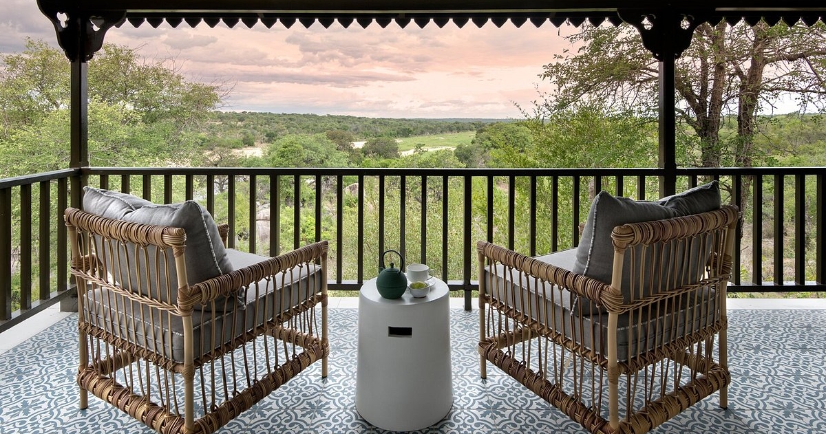 Fra suitenes terrasse kan du se ut over N’waswitsontso-elven og de store slettene. Lodgen har fasiliteter som svømmebasseng og spa-behandlinger. Et godt alternativ for familier, da barn over åtte år er velkomne.