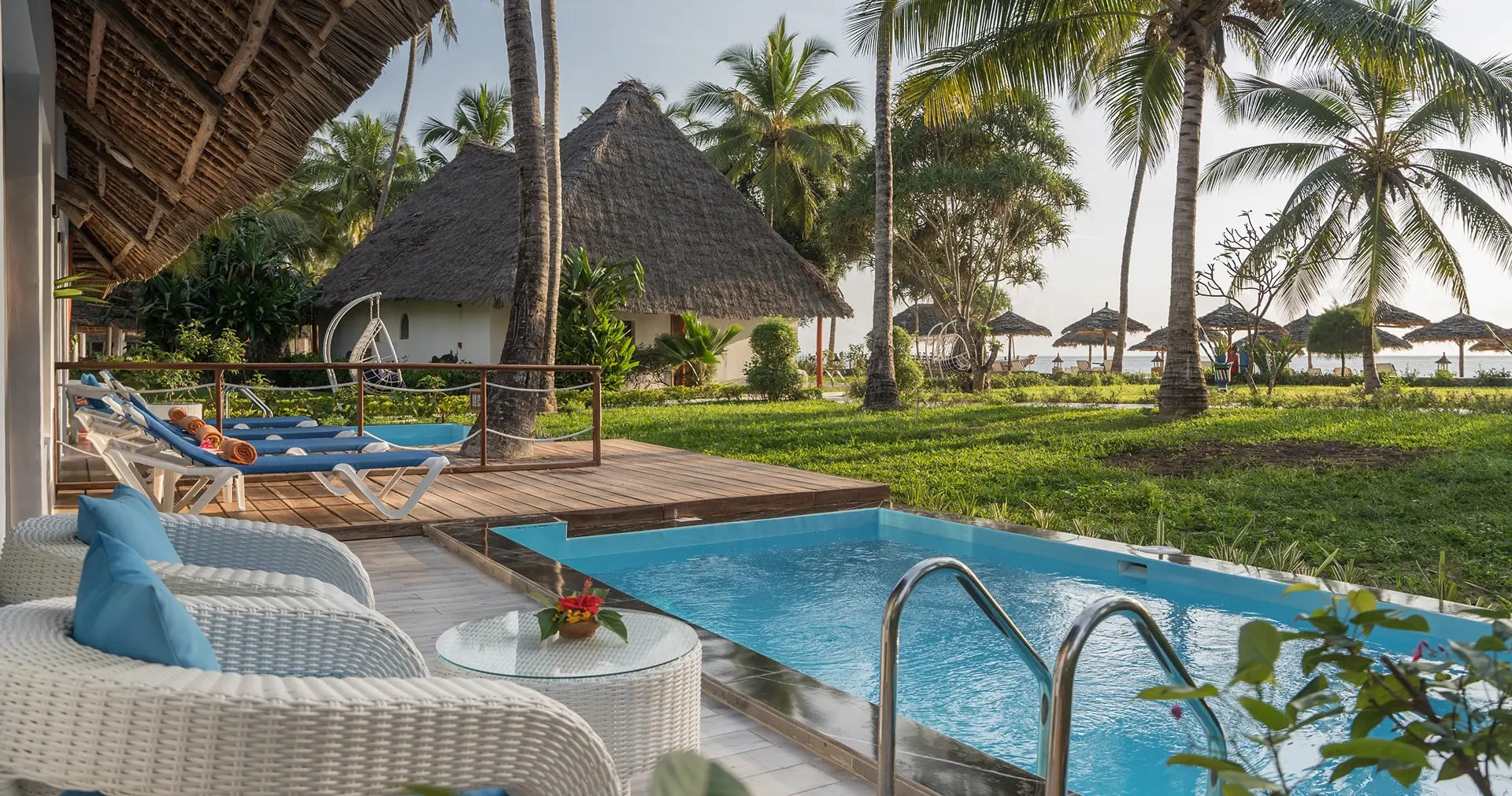The Island Pongwe, på Zanzibars nordøstkyst, tilbyr en eksklusiv og avslappende opplevelse på en liten privat øy. Her finnes det fem standardvillaer og en luksuriøs Sultan-villa, alle med havutsikt og private verandaer.