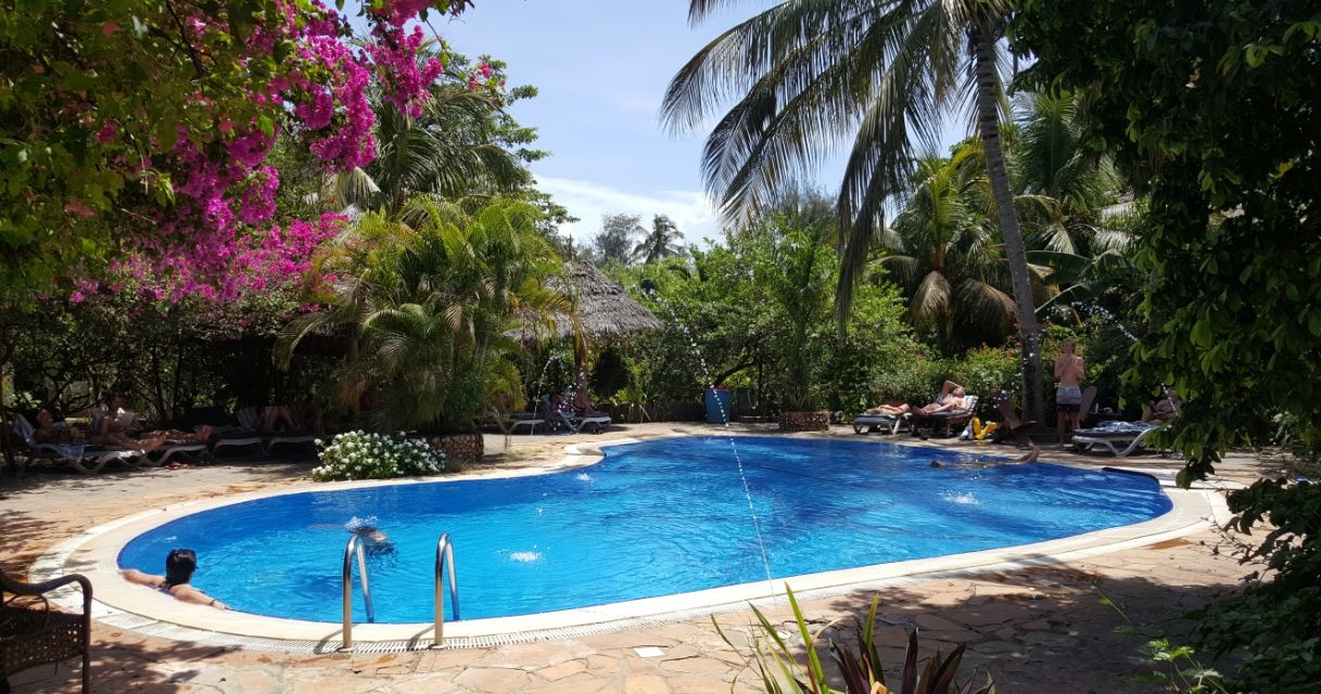 My Blue Hotel et et budsjettvennlig overnattingssted nord på Zanzibar, ved Nungwi. Området er kjent for vakre strender og flotte solnedganger.