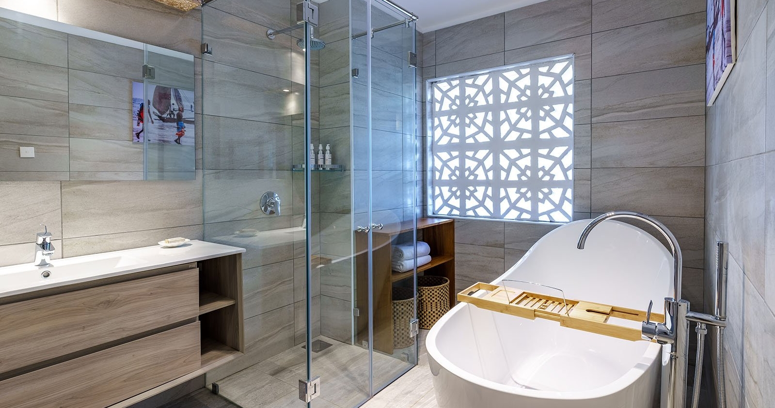 Villaen vender mot det glitrende turkise vannet i Det indiske hav, hvis farger gjenspeiles i de kjærlig utvalgte dekorative elementene. Et spesielt høydepunkt er takterrassen ved tårnet, hvor du kan nyte den fargerike solnedgangen med deilig fingermat og en kald drink.
