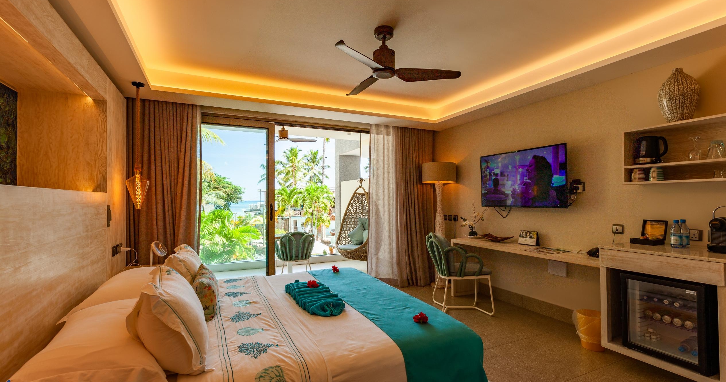 Oppkalt etter det sjeldne og unike Coco de Mer-palmen, tilbyr hotellet spektakulær utsikt over de omkringliggende øyene, skogkledde fjellsider og strålende solnedganger.