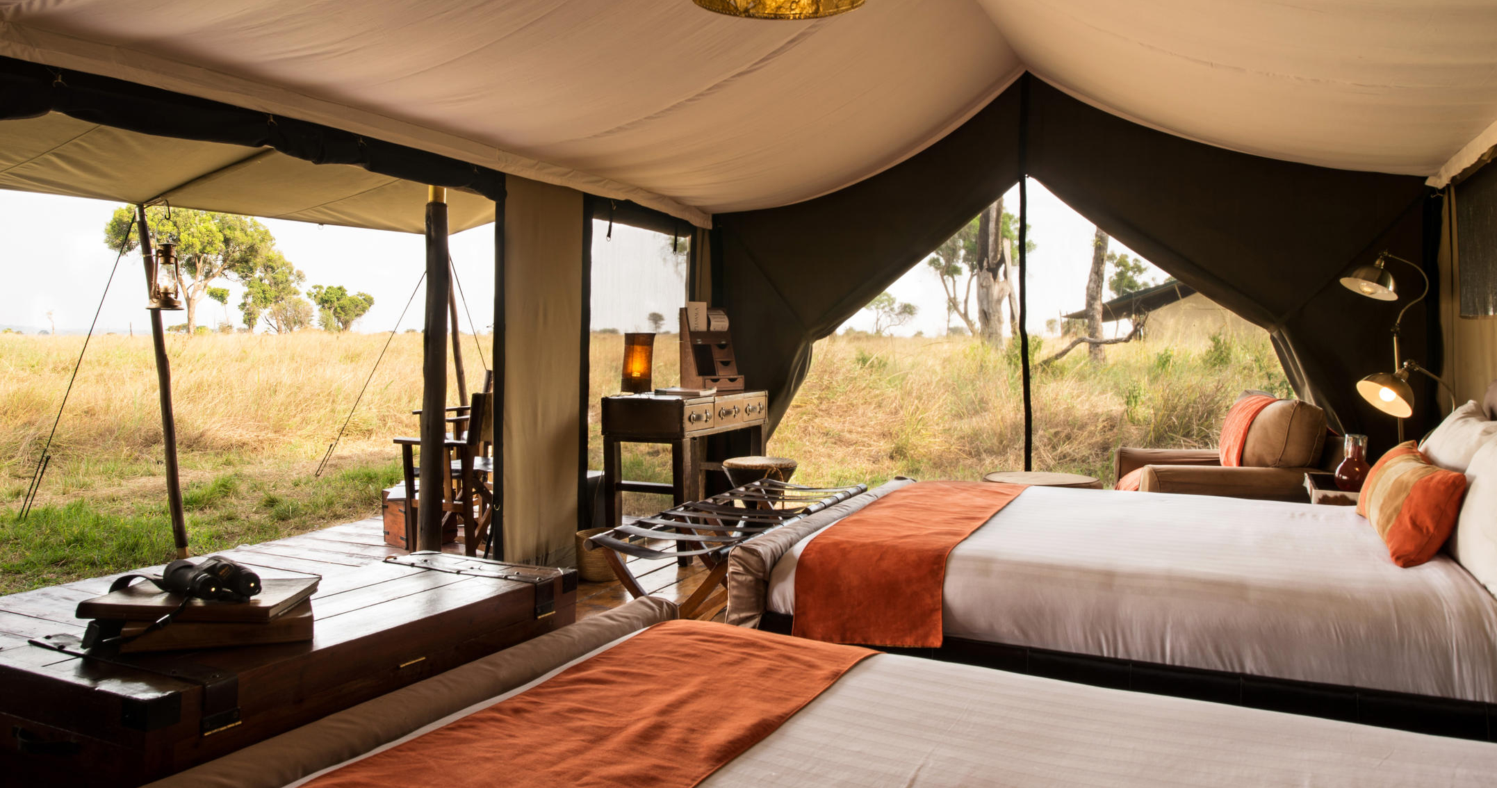 andBeyond Under Canvas tilbyr en eksepsjonell safariopplevelse med fokus på å følge den storslåtte ville migrasjonen. Denne flyttbare luksuriøse teltcampingen inkluderer ni telt per leir, inkludert et romslig familietelt.