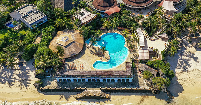 Her finner man tre svømmebasseng, to restauranter og to barer. Nyt følelsen av å befinne seg langt fra sivilisasjonen og hverdagsstresset! Øya deles med både bavianer og colobusaper, som forsterker den eksotiske følelsen. Siden man er på en liten øy er det stille og fredelig på stranda og få selgere i området. I løpet av oppholdet har dere mulighet til å utforske mange vannaktiviteter, som padling, dykking og snorkling. Hotellet tilbyr en rekke ulike spabehandlinger for den som vil unne seg det lille ekstra.