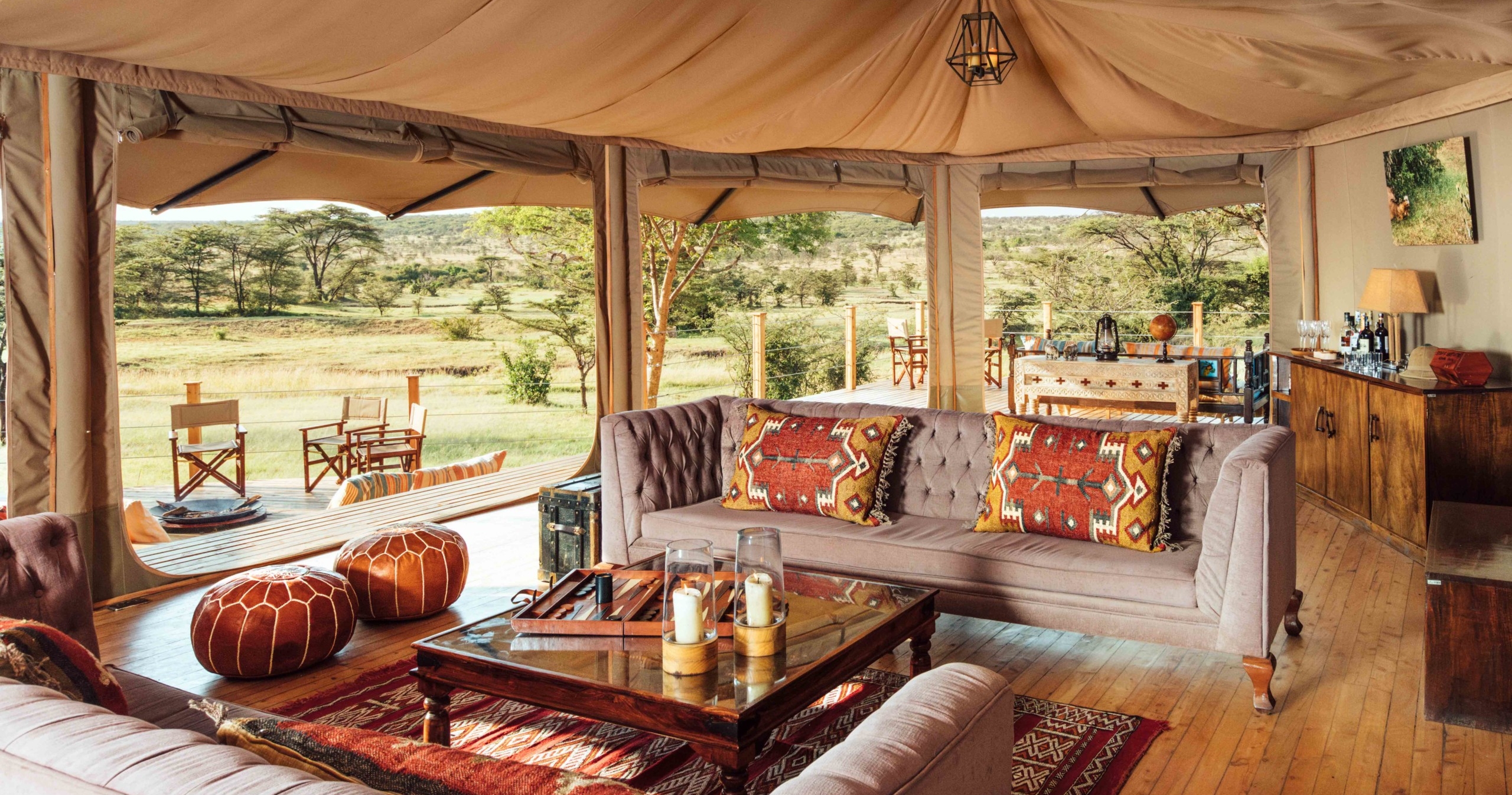 De luksuriøse og vakkert innredede teltene har egne bad og er hevet på tredekk med utsikt over elven Mara. Entim-opplevelsen handler om å være en del av landskapet og få dype møter med ville dyr og Masaifolket i deres eget land.