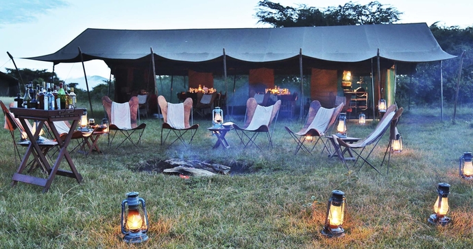 Campen har en elegant innredet teltlounge og bar, og drives av miljøvennlig solenergi. Den er optimal for tidlig morgensafari og tilbyr guidede turer.