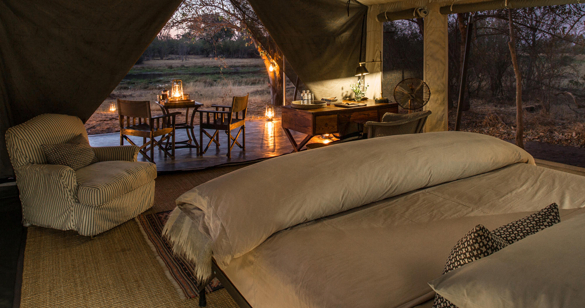 Hvert telt er elegant innredet og har et privat avkjølingsbasseng, innendørs badekar og utendørs dusj. Her ønskes gjester i alle aldre velkommen, og stedet er perfekt for deg som ønsker en luksuriøs og uforglemmelig safariopplevelse i en av Afrikas mest spektakulære omgivelser.