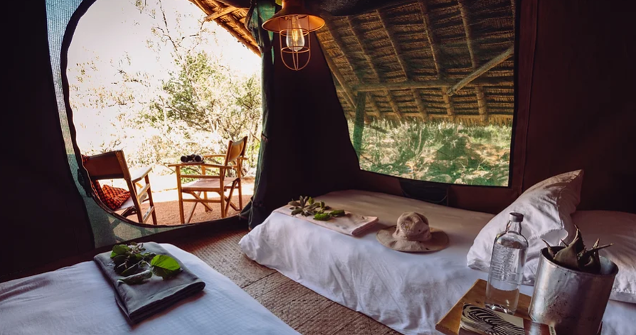 Den autentiske innredningen gjenspeiler safarieventyrene fra 1920-tallet og suppleres med moderne komfort, inkludert et evighetsbasseng med utsikt over elven. Med bare 16 telt, inkludert ett større familietelt, tilbyr campen en eksklusiv og privat opplevelse og ønsker gjester i alle aldre velkommen.