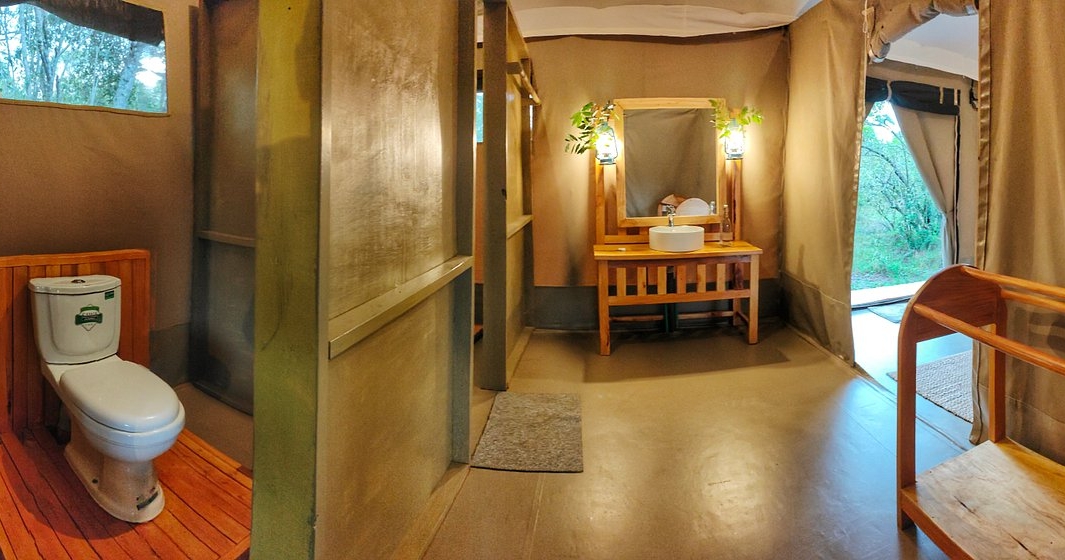 Det er kun 10 romslige og komfortabelt innredede telt som bidrar til den intime og luksuriøse følelsen. Hvert telt er smakfullt dekorert med afrikansk tema. I campens restauranttelt serveres både internasjonale retter og lokale delikatesser, tilberedt av deres kokk.